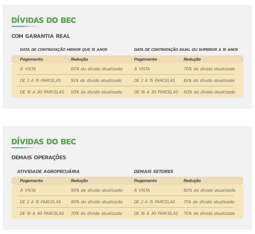 O Refis ainda prevê condições especiais para dívidas decorrentes de operações de crédito efetuadas pelo Banco do Estado do Ceará (BEC).
